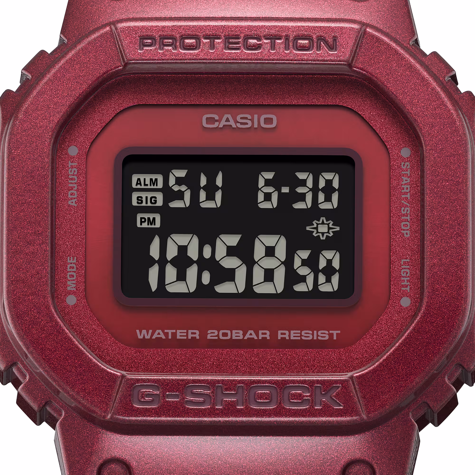 رنگ: قرمز (معمولاً بهعنوان رنگی جذاب و مدرن در ساعتهای G-Shock مورد استفاده قرار میگیرد)